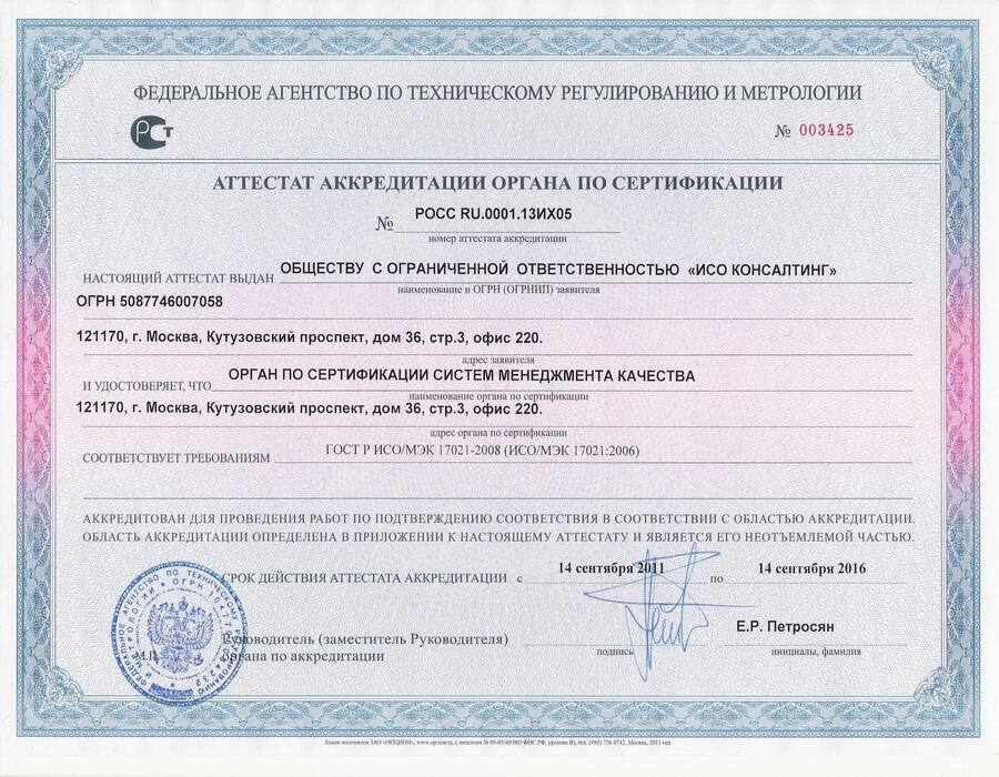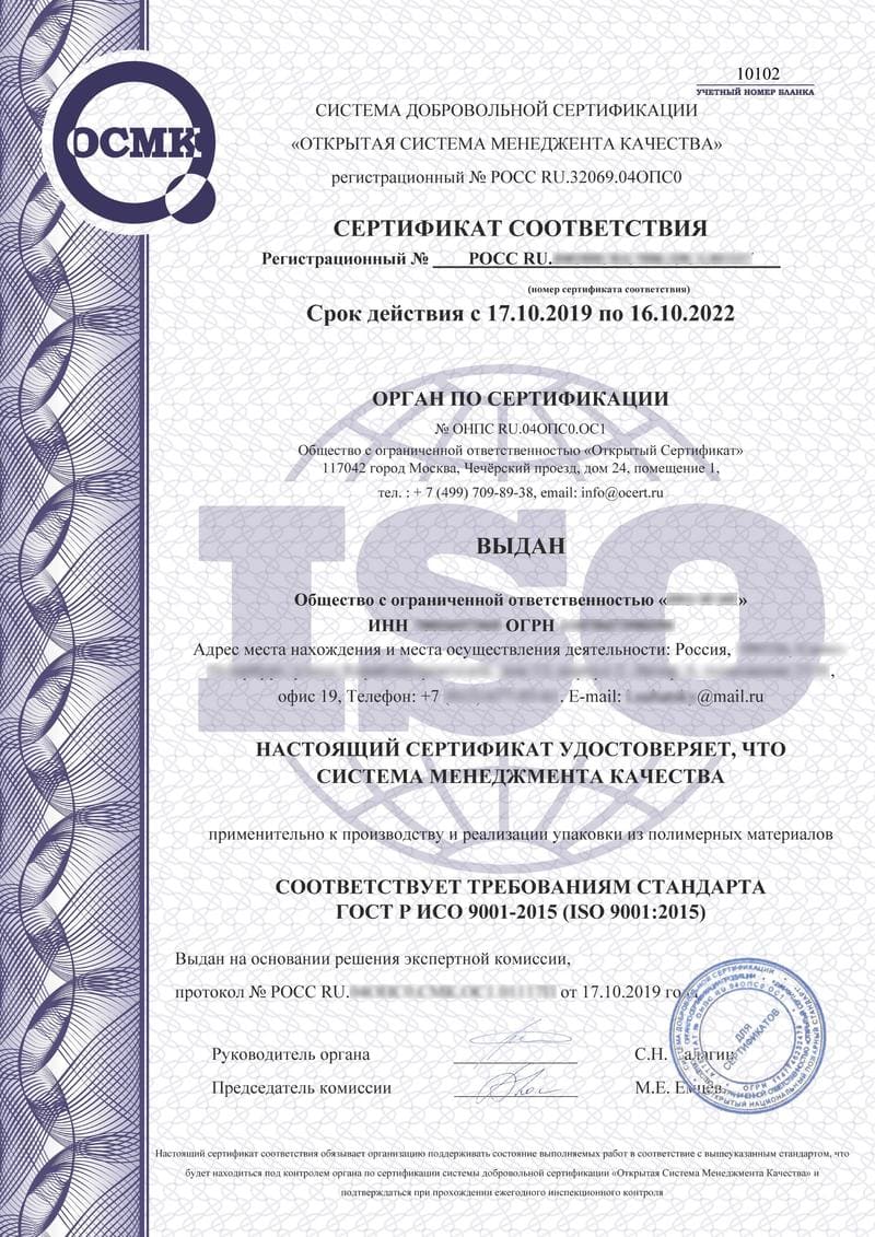 В России международный сертификат 9001 соответствует стандарту ГОСТ Р ИСО 9001:2015. Имеют юридическую силу и версии, изданные ранее, – ISO 2008, ISO 2011. Срок действия документа – 3 года.