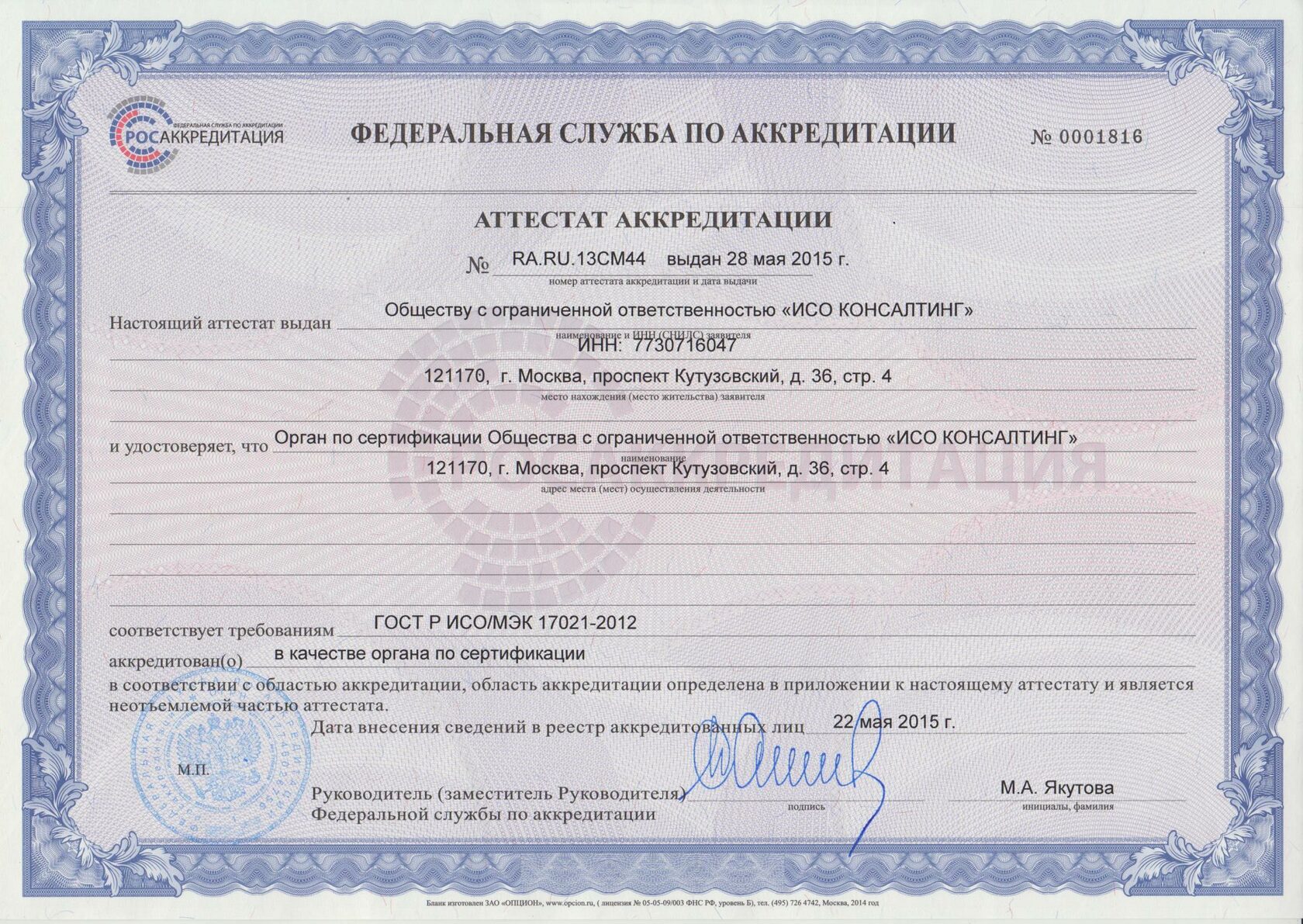 Консалтинговая компания РУСГАРАНТ – компетентный независимый аккредитованный орган, предлагающий получить законный сертификат ISO 9001:2015 за 1-2 дня. Сертифицирование в ЦентрКонсалт – это оперативное прохождение нескольких этапов: